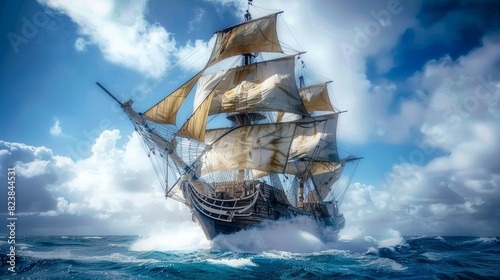 Pirate ship war at the open sea