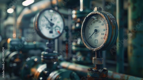 Close up of a gauge in a building, suitable for industrial and construction concepts