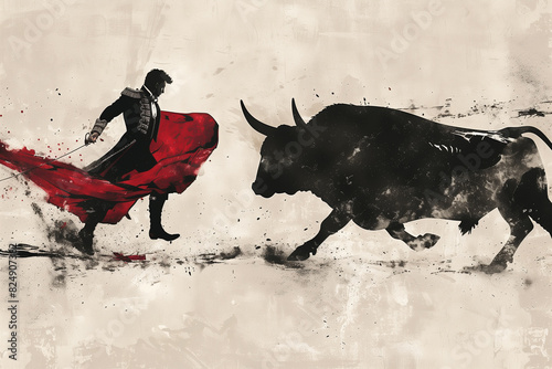 Elegant Minimalist Wall Art, Matador and Bull Silhouettes