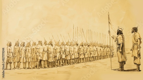 Biblical Illustration of Gideon’s Army Reduced to 300 Men, God’s Victory, Beige Background, Copyspace