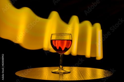 Kieliszek czerwonego wina na tle pomarańczowej wstęgi światła