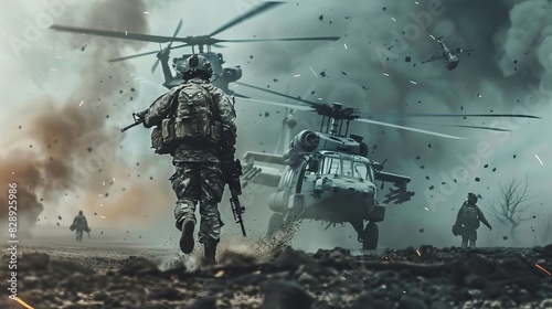 illustration defense sector, soldies, war, battle scene, 16:9