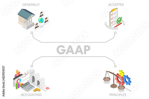 3D Isometric Flat Illustration of GAAP, Generally Accepted Accounting Principles
