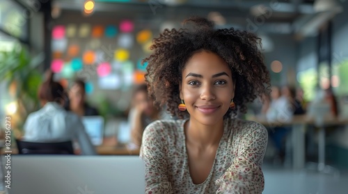 Mulher afro criativa, profissional de marketing no trabalho sorrindo
