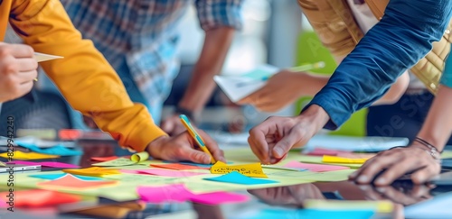 Diverse Team Collaborating on Creative Project in Modern Workspace