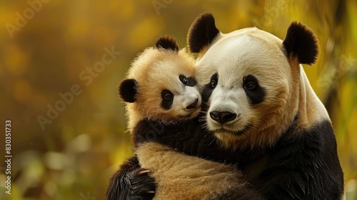 Adorable panda cub cuddled up against its mother, epitomizing the bond between parent and child in the animal kingdom
