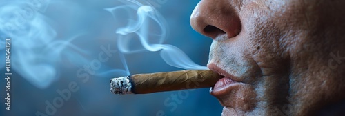 Sophisticated gentleman enjoying a cigar with elegant smoke swirling gracefully in the air