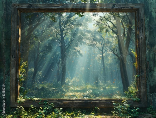 Captivating 3D depiction of ethereal forests, showcasing a tranquil scene with dappled sunlight streaming through the canopy, casting enchanting shadows on the forest floor, framed beautifully in a