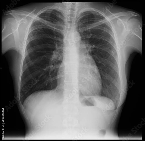 High-Resolution Chest X-Ray with Clear Lungs, Heart, and Ribcage Details, Suitable for Medical Research, Healthcare Education, or Academic Presentation, Ideal for Poster or Print on Demand
