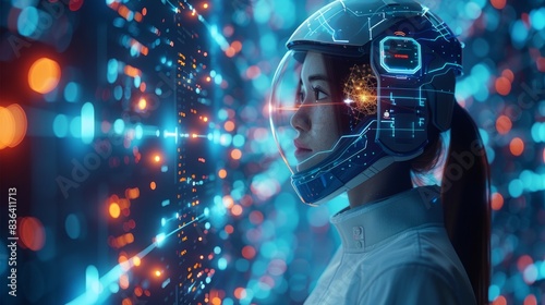 Isometric modern illustration of artificial intelligence or neural networks. AI technology background with human and robot. Web banner layout.