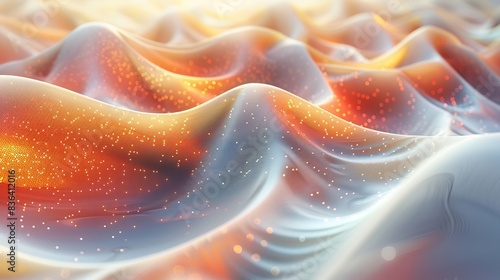 A wave of abstract musical sounds. Smooth information transfer. 3D rendering.