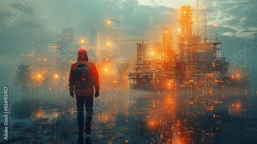 An engineering and technology project concept involving future building construction using a tablet computer and smart industry and Internet of Things software.