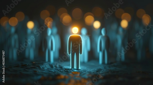 Talent Acquisition A minimal scene of a figure recruiting glowing talent