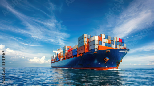 Large cargo ship loaded with containers on the ocean