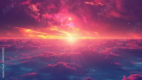 Divine fantasy sky and sun flat design front view celestial theme vivid , god believe freedom concept