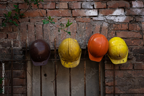 Kolorowe kaski pracowników stoczni