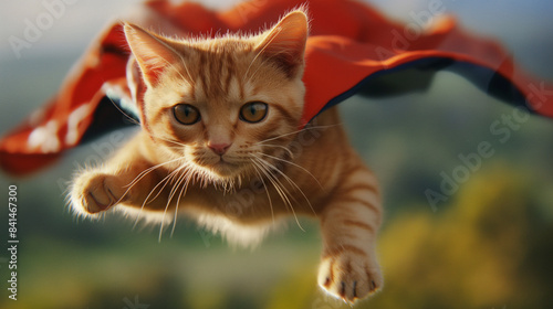 Internationaler Tag der Katze Katze im Superheldenkostüm als Superheld Superman verkleidet Welttag der Katze am 08. August Generative AI