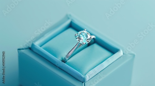 Diamond ring in a blue box on blue background