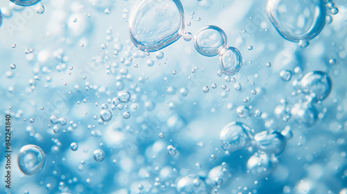 炭酸の泡が輝く背景にグラスに注がれたソーダとボトル、炭酸飲料の夏イメージ_炭酸水・プール・海