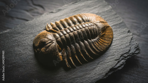 A beautifully preserved trilobite fossil on a piece of slate, archaeological and paleontological finds
