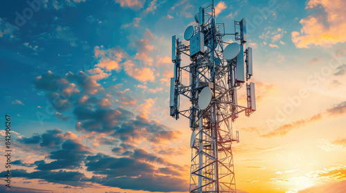 Modern Cell Tower Against Vibrant Sunset Sky