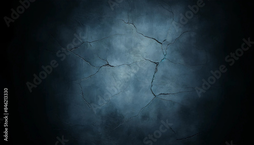 亀裂のある青いコンクリートの壁 ひび割れた壁 テクスチャ 壁紙 背景 表面 暗い壁