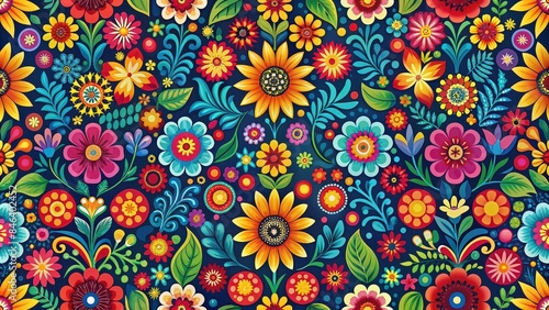 Hispanic Heritage Month pattern wallpaper featuring vibrant floral motifs, Hispanic, Heritage, Month, pattern, wallpaper, floral, motifs, colorful, vibrant, celebration, Hispanic culture
