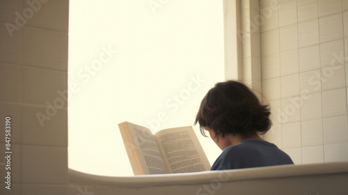 男, 男性, 浴室, お風呂, 水, お湯, リラックス, 本, 本を読む男性, Male, man, bathroom, bath, water, hot water, relax, book, man reading book
