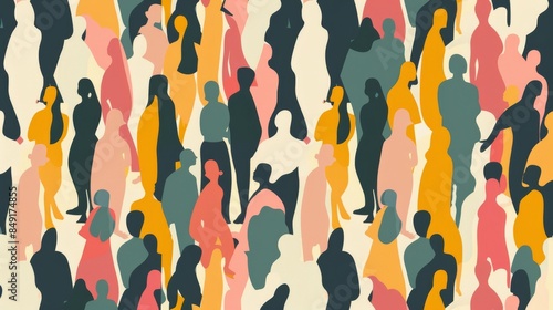 Flat illustration of abstract human figures in a seamless pattern for a modern artistic look.