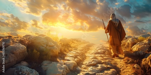Moses guides Jews through desert to promised land in biblical exodus. Concept Religious, Bible Stories, Exodus, Moses, Promised Land