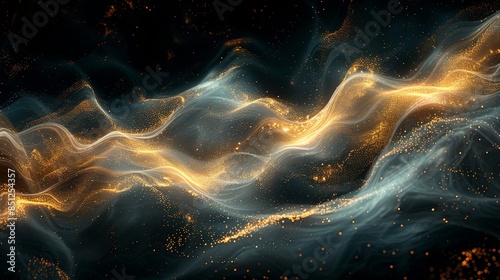 Abstract tendrils of gold meander across a backdrop of deep black, reminiscent of celestial constellations. Abstract Backgrounds Illustration, Minimalism,