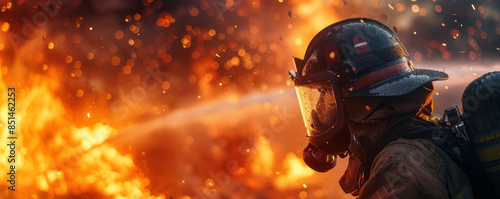 A firefighter extinguishing flames and rescuing people from a burning building.