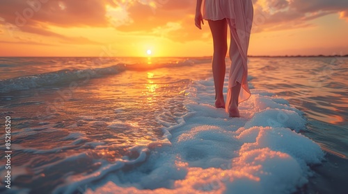 Woman Walking on Water at Sunset