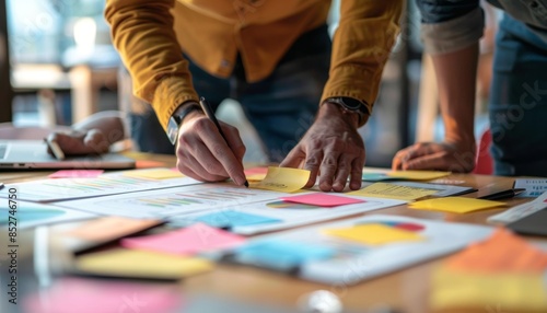 Businessman working on project with sticky notes