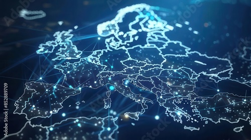 futuristic digital map of europe network connectivity data transfer tech business concept 3d illustration