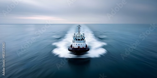 Longexposure photo of a tugboat creating a distorted perspective in motion. Concept Tugboat long exposure, Distorted motion, Nautical photography