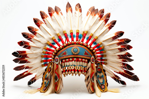 Warbonnet, American Native American headdress, Indigenous Peoples Day, white background