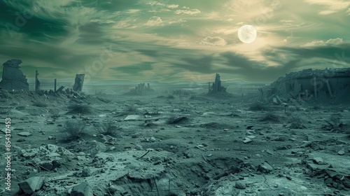 mysterious desolate landscape of an apocalyptic wasteland surreal digital art illustration