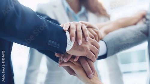 business people putting their hands together Stack of hands Unity and teamwork for ESG environmental social governance policy for modish businessBusiness cooperation for environmental : Generative AI