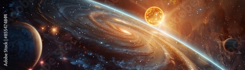 Astronomy, with a detailed model of the solar system, in a planetarium focus on, celestial understanding, ethereal, overlay, planetarium backdrop
