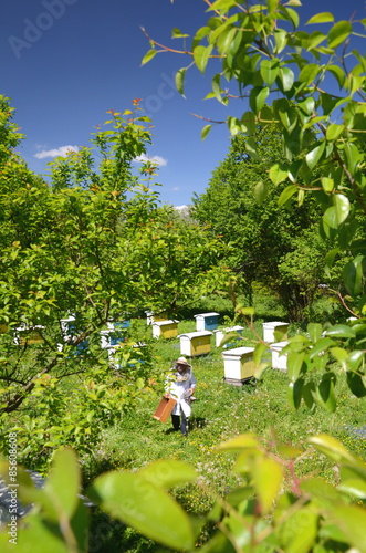 Pszczelarz podczas inspekcji w pasiece wiosenną porą