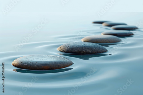 Smooth stepping stones creating a path on tranquil water. The serene scene emphasizes balance, calmness, and harmony in nature.