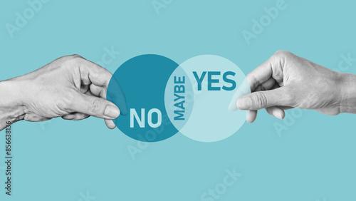 Choice between yes or no and maybe options. Decision making concept. Compromise, discussion and dilemma metaphors
