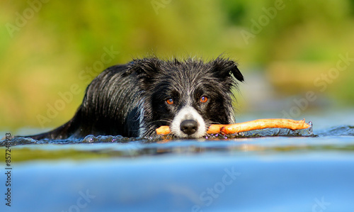 Czarno biały pies rasy Border Collie w wodzie