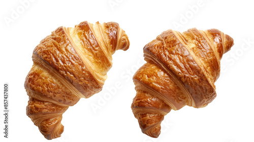 Top view of two croissants lying next to each other as a separate object on a transparent background. PNG Image.