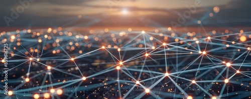 Abstract image of silhouetted business people connected by digital lines and nodes, representing communication and network in a digital era.