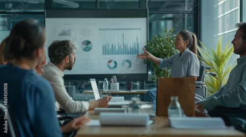 disabled woman on a wheelchair doing a presentation an office