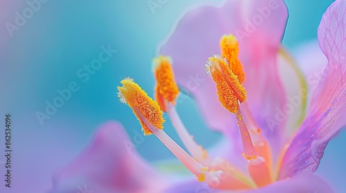 Vibrant macro of pink flower stamen and pollen
