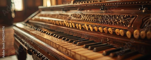 A musical instrument, its strings or keys waiting to be played and filled with music.
