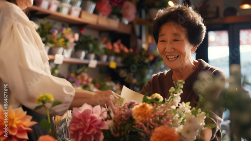 花屋の笑顔の日本人女性店員